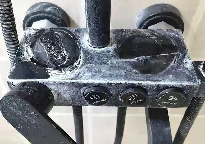 我们家里安装的如果是深色的水龙头,特别是黑色的龙头,用不了多长时间,上面全是白色的白斑点结晶。